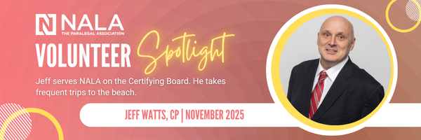 Jeff Watts, CP, joined NALA’s Certifying Board (CB) in spring 2024 out of appreciation for the paralegal field.